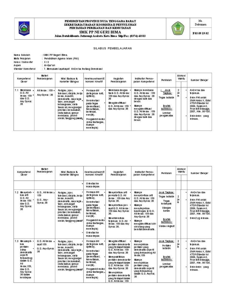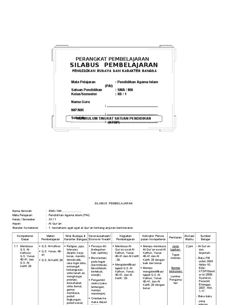 File silabus yang kami bagikan kali ini dalam bentuk microsoft office word yang disimpan di dropbox sehingga memudahkan dalam proses download. Rpp rpp pai dan bp kelas xi sma / smk kelas 11 kurikulum 2013 revisi 2017 telah kami sesuaikan dengan materi revisi 2017 sehingga anda hanya tinggal mengganti identitas sekolah saja. Download rpp pai sma kurikulum 2013 lengkap kelas x, xi, xii. Jika anda hendak mengubahnya dalam bentuk pdf, silahkan baca tulisan berikut ( cara mengubah file pdf ke doc dan sebaliknya ). Bp kelas xii sma revisi terbaru. Untuk mengunduh atau download rpp pai sma smk kelas xi kurikulum 2013 revisi 2017 sangatlah mudah hanya dengan mengklik tautan di bawah. Itu semua langsung dibagikan kemdikbud melalui. Pembuatan rpp dan silabus harus sesuai dengan pedoman yang berlaku, karena setiap tahunnya dilakukan revisi dalam pembuatan rpp. kurikulum yang akan diberlakukan nanti yang sekarang dikenal dengan kurikulum 2013 seperti diberitakan leh situs kemendiknas akan mengurangi beban guru dalam menyusun silabus, yang pada kurikulum sebelumnya yaitu ktsp guru diberi wewenang untuk menyusun silabus, pada kurikulum yang baru nanti guru tidak lagi akan terbebani dengan membuat silabus karena tugas tersebut sudah dibebankan kepada. silabus fisika teknologi dan rekayasa smk kelas x pristiadi utomo 05. Hal ini bukan hanya tuntutan pekerjaan tetapi sudah menjadi tugas dan tanggung jawab seorang tenaga pendidik. silabus rpp pai smp mts kurikulum 2013 kelas vii, viii, ix. Mata pelajaran pendidikan agama islam dan budi pekerti di kelas xii sma dan sedang membutuhkan perangkat pembelajaran silabus kurikulum 2013 pendidikan agama islam dan budi pekerti kelas xii maka anda dapat memilikinya secara gratis melalui link download di bawah ini :